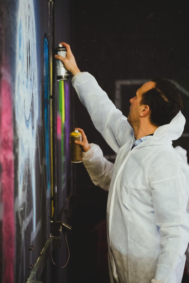 Tijdens deze graffitiworkshop maak je onder begeleiding van Siegfried kennis met de basisprincipes van graffiti. Elke deelnemer krijgt een doek om zich creatief op uit te leven. Samen creëren jullie één groot collectief kunstwerk, waarbij elk doek een onderdeel vormt van het geheel. Na afloop neem je je doek mee naar huis - ideaal om later op kantoor tentoon te stellen.